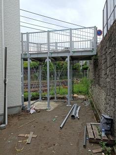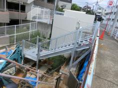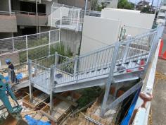 高低差計画案件、道路側から建物側に架台通路施工