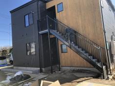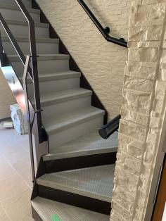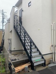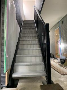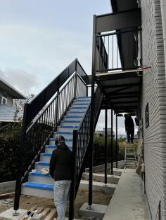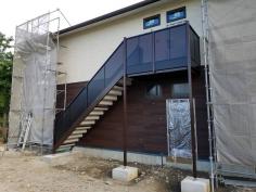 階段鉄骨色 ブラウン新色にて施工、手摺りは黒色ツートン仕上げ