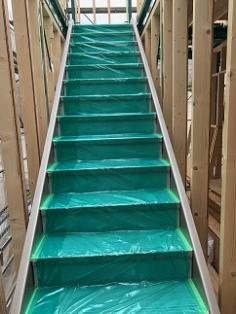 壁仕上がり前に、先行階段取付ました。