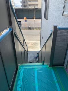 近隣接境の為、階段手摺上に目隠しパネル施工