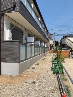 縦格子手摺りの廊下ユニット付きです。